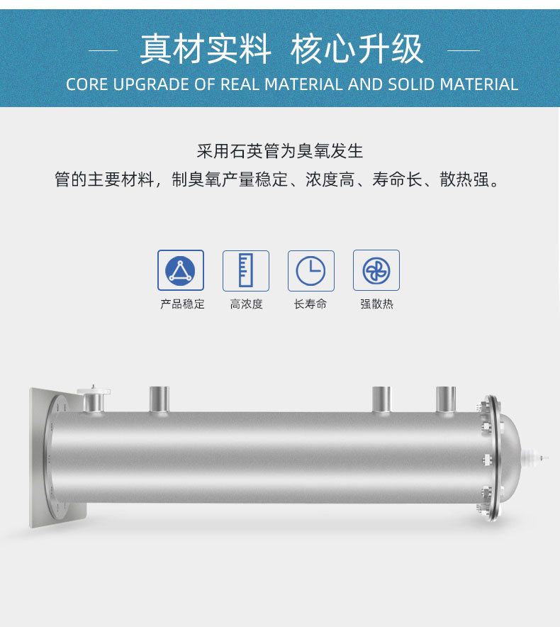 采用多根石英管放電,臭氧濃度更高更穩(wěn)定