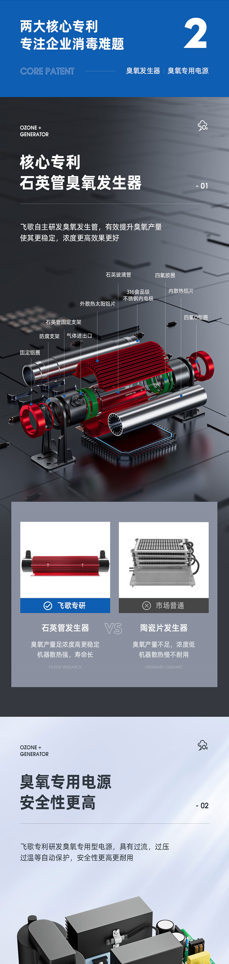 ◆線路板核心電子元件采用進(jìn)口芯片,如:GBT八C等核心芯片,整塊線路自主研發(fā),自主編寫程序,具有過流、過溫、過壓的保護(hù)。完美的配合飛歌設(shè)計(jì)的臭氧發(fā)生管風(fēng)扇采用七葉子的雙滾珠風(fēng)扇,風(fēng)量大,噪音小,散熱效果極佳
