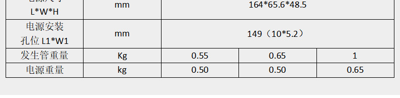 臭氧管尺寸L*W*H |
