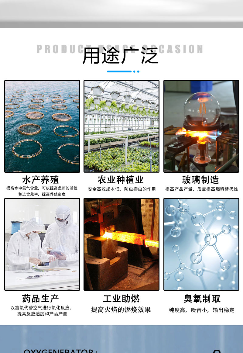 廣泛應(yīng)用于工業(yè)、農(nóng)業(yè),藥品生產(chǎn),水處理,玻璃制造和臭氧制取