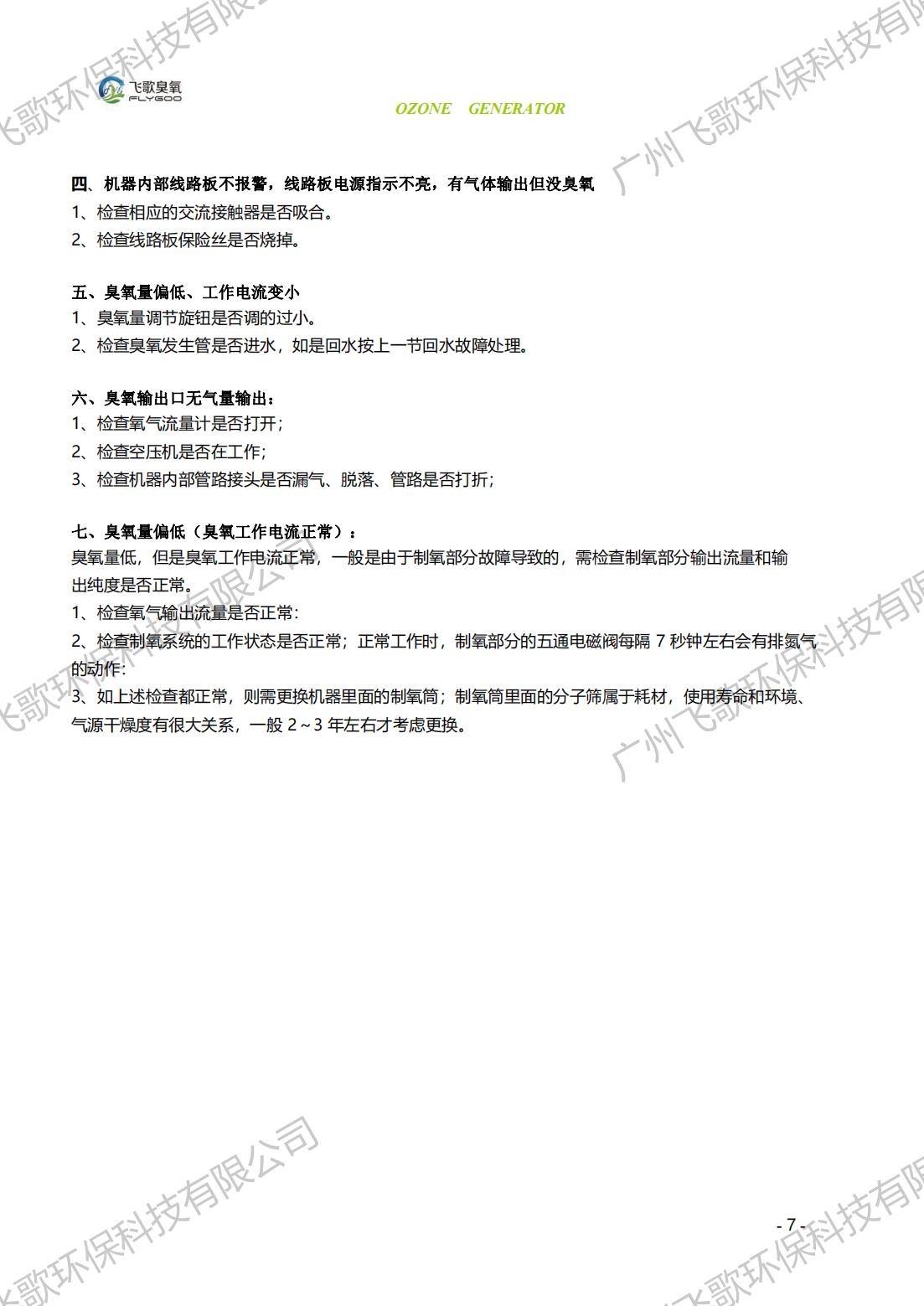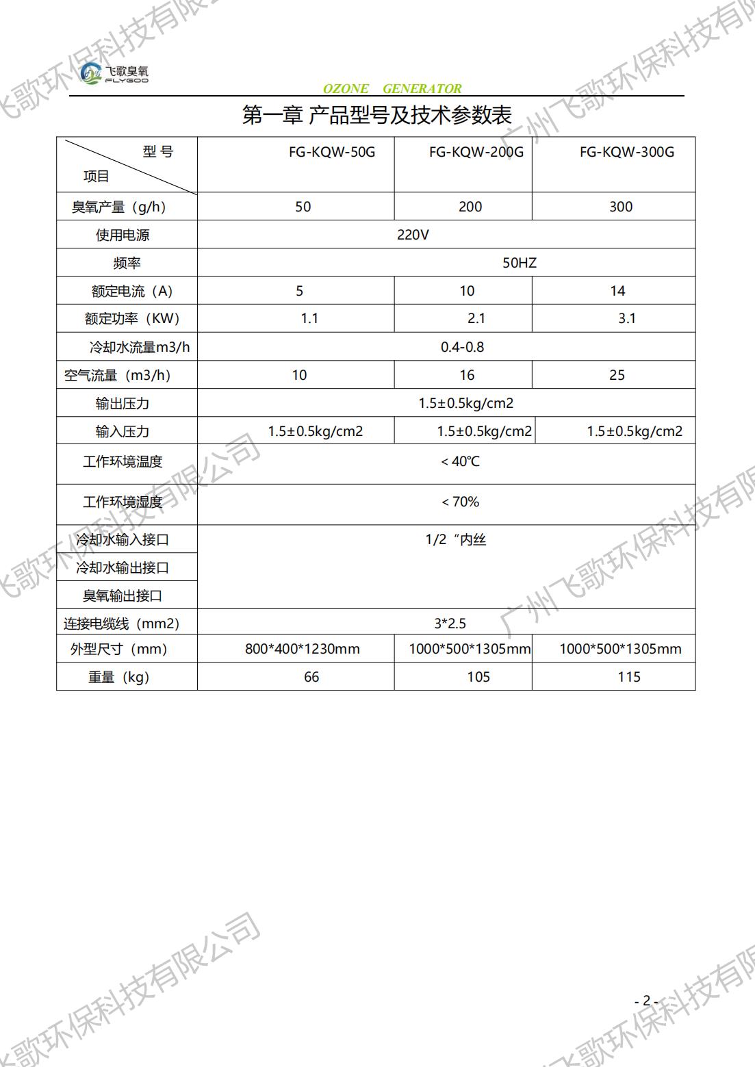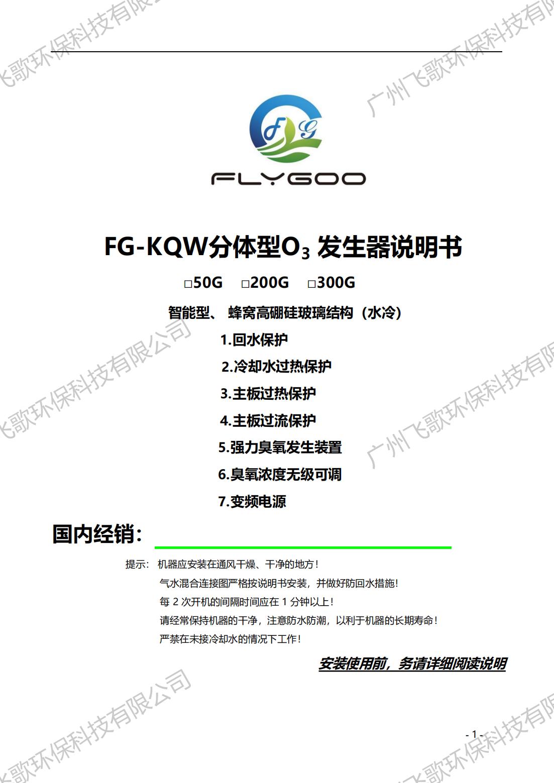飛歌FG-KQ-50-300臭氧發(fā)生器產(chǎn)品使用說明書