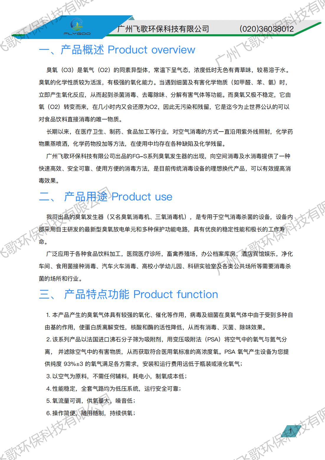 飛歌風冷FG-YQ-3-20氧氣源臭氧發(fā)生器產(chǎn)品使用說明書